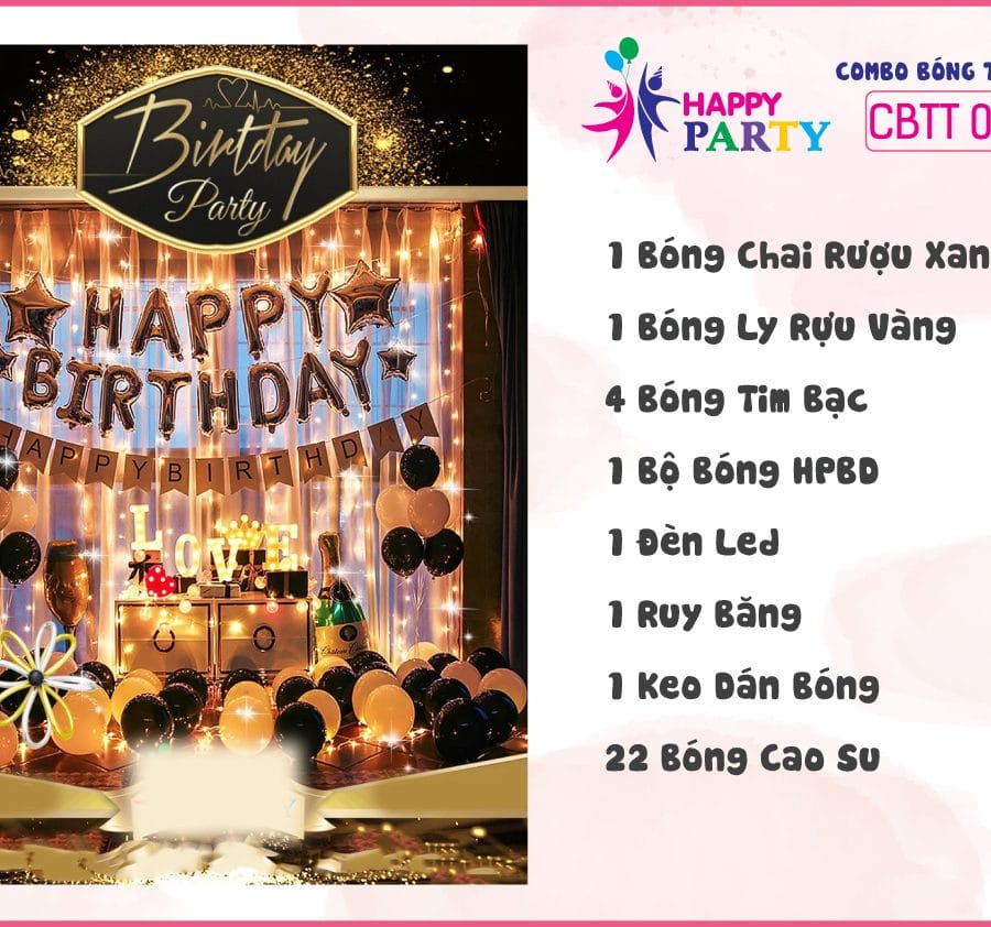 Happy Party chuyên cung cấp các sản phẩm phụ kiện trang trí sinh nhật và tiệc phù hợp cho mọi lứa tuổi. Phụ kiện sinh nhật với chủ đề về các nhân vật trong những bộ phim hoạt hình nổi tiếng hay về những tông màu trang trí đơn giản đều được thiết kế một cách chi tiết và tỉ mỉ trên những phụ kiện trang trí khác như: tháp bánh sinh nhật ba tầng, nón giấy, dây happy birthday,hộp quà, ly và đĩa giấy… các loại bong bóng như: bóng hình, bóng chữ, bóng nhũ, … cùng với hàng loạt các loại bóng hình nhân vật được hóa thành phụ kiện sinh nhật một cách bắt mắt cho các bạn tha hồ chọn lựa.